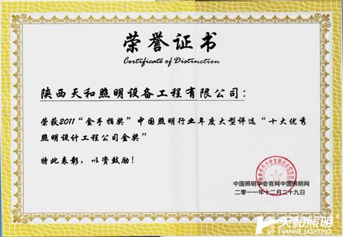 2011年金手指獎“十大優秀照明設備工程有限公司”