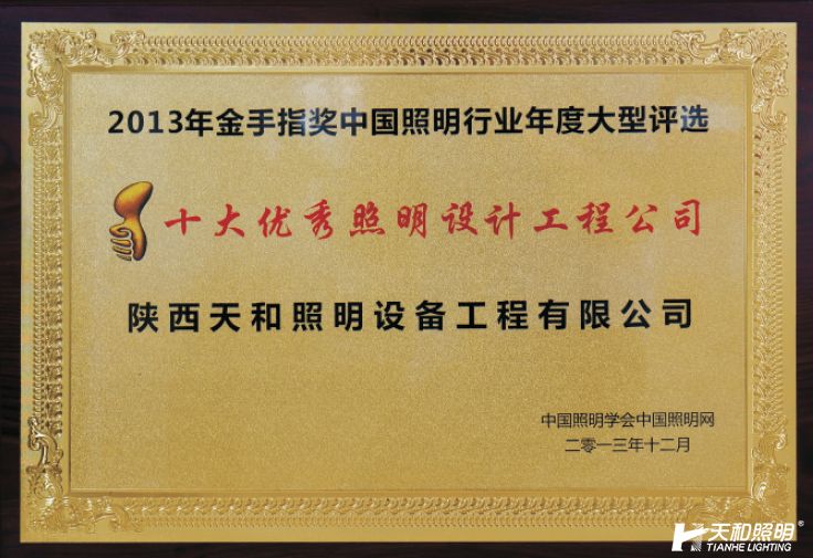 2013金手指獎獲得“十大優秀照明工程公司”